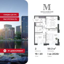Продаётся 2-к квартира 50,3 кв.м. в ЖК "Михалковский" на 19-м этаже 20 этажного дома.