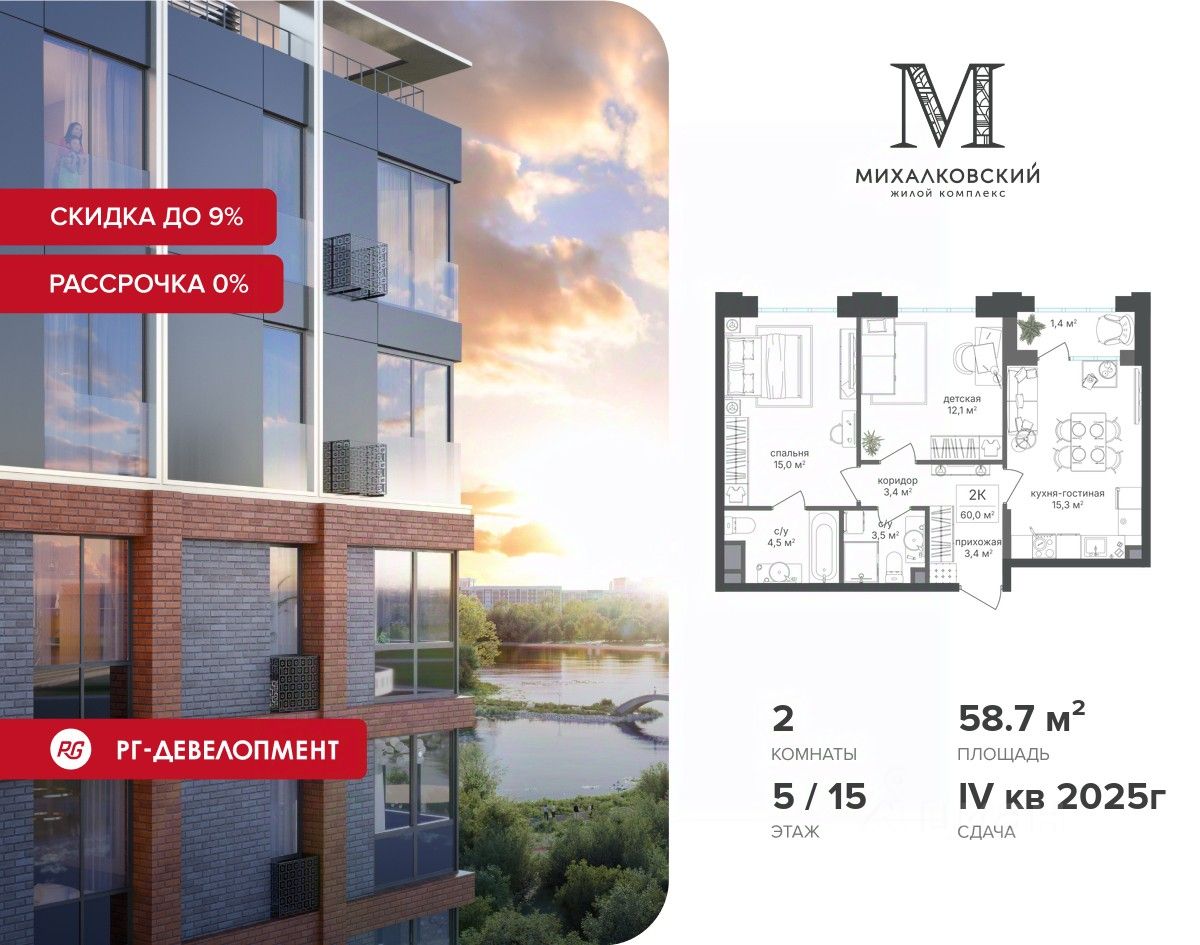 Компания "РГ-Девелопмент" предоставляет скидку на квартиры в жилом комплексе. Акция действительна до 15.04.2026 включительно. Чтобы воспользоваться предложением, необходимо подписать договор на приобретение недвижимости до 15.04.2026 включительно.