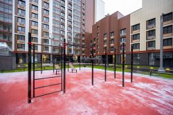 Обустроенный двор, зоны отдыха, игровые и спортивные площадки.