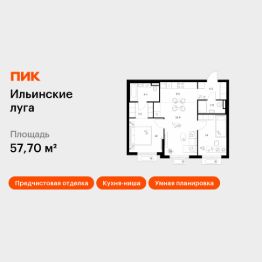 Продаётся 2-комн. квартира площадью 57,7 кв.м на 5 этаже 9 этажного дома (Корпус 4.3, Секция 1) проекта ПИК Ильинские луга. Светлый просторный подъезд на уровне земли, функциональная планировка, большие окна, предчистовая отделка.