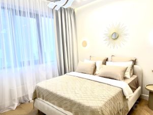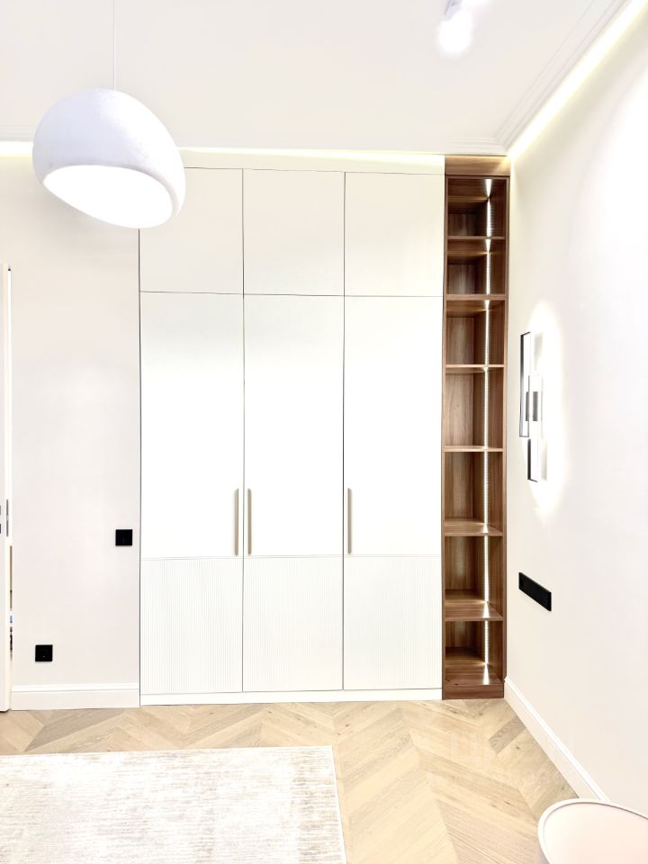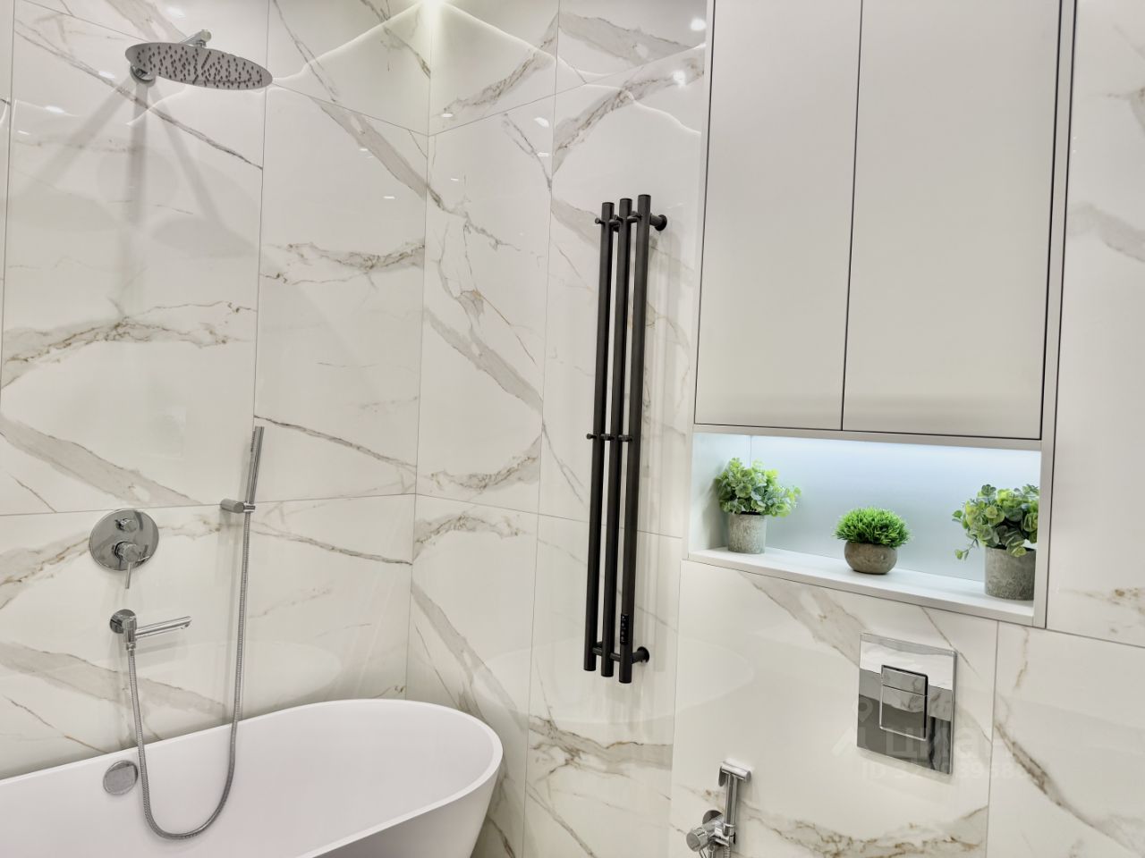 Продается просторная трехкомнатная квартира в современном жилом комплексе, расположенном всего в 5 минутах пешком от станции метро Шелепиха. Общая площадь квартиры составляет 68 кв. м, из которых 30 кв. м занимает жилая площадь и еще 30 кв. м отведено под кухню. Квартира находится на 43 этаже 51-этажного дома, построенного в 2025 году. Высокие потолки 3 метра добавляют ощущение простора и света.