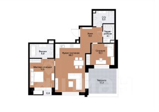 Продаётся видовая квартира свободной планировки общей площадью 75,7 м² в ЖК бизнес-класса "Остров" на берегу Москвы-реки.