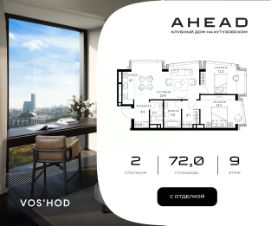Ahead это эксклюзивный проект в центре столицы, включающий всего 77 резиденций, что гарантирует приватность и комфорт для жильцов. Комплекс отличается авторской архитектурой от бюро "Цимайло Ляшенко и Партнёры", а из окон открываются панорамные виды на Парк Победы, Воробьёвы горы и Москва-Сити. Внутреннее пространство оформлено с особым вниманием к деталям: лобби создано студией UNK Interiors, а двор благоустроен в японском стиле с 58-метровым водопадом высотой 4,5 м и сосной "ниваки". Все резиденции предлагаются с отделкой White Box. При покупке ряда апартаментов владелец получает в качестве бонуса готовый дизайн-проект с рабочей документацией от известной студии дизайна BALCON, что в разы ускорит и упростит процесс превращения "белого листа" в продуманное и комфортное пространство для жизни.