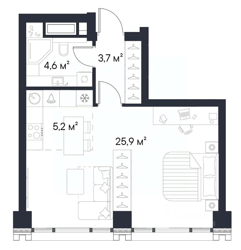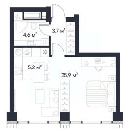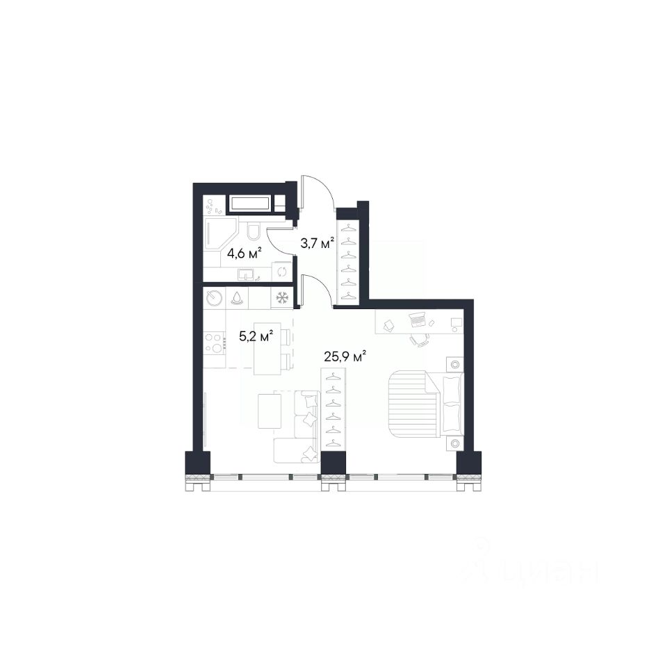 Продаётся квартира-студия площадью 39,4 м², расположенная на 22 этаже корпуса 2,1.