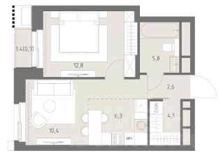 Общая площадь42,7 м²