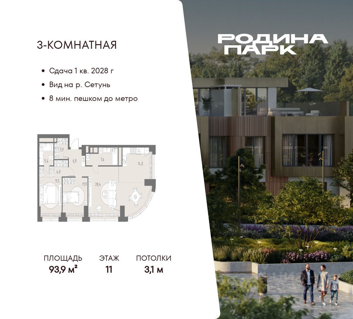 В жилом кластере Родина Парк рядом с природным заказником Долина реки Сетунь продаётся 3-комнатная квартира. Продуманная европланировка, которую легко зонировать под ваши запросы. Потолки от 3,1 м. "Родина Парк" — премиальный семейный кластер с образовательным медиакластером, строящийся на западе Москвы в окружении природного заповедника "Долина реки Сетуни". • Скидки недели на избранный пул лотов • Рассрочка 0% на выгодных условиях до 2 лет • Семейная ипотека, подбор комбо-вариантов ипотечных программ прямо в офисе продаж • Скидки 8% при 100% оплате или ипотеке. ЛОКАЦИЯ: 8 минут пешком до станции БКЛ "Давыдково". 12 минут на автомобиле до Нового Арбата. Удобные выезды на Кутузовский проспект, Аминьевское шоссе. ИНФРАСТРУКТУРА И СЕРВИСЫ ДЛЯ ЖИТЕЛЕЙ - Уникальная экосистема для развития, здоровья и творчества на территории 3,5 Га: - Первый в России образовательный медиакластер (с участием Русской медиагруппы) для творческого развития детей и взрослых с возможностью получить востребованную профессию в сфере шоу-бизнеса. - Инфраструктура и сервисы для семей с детьми на территории жилого кластера (частный детский сад, детские игровые пространства, творческие студии для занятий музыкой и танцами, безопасная и комфортная среда для детей и родителей), событийно-культурная площадка для проведения семейного досуга); - Здоровая среда (биохакинг-центр, фитнес-зал и спортивная инфраструктура во дворе, медитационные пространства, инженерные решения для освещения, свежего воздуха и очистки воды, сервисы красоты и поддержания активного долголетия); - Сервисы заботы (инфраструктура комфорта - подземный паркинг, кладовые, колясочные, консьерж- сервис, умный дом, мобильное приложение, профессиональная управляющая компания, сервисы охраны и обеспечение абсолютной безопасности) - Комьюнити резидентов (социальные пространства для дружеского и делового общения - летний атриум с уличным кинотеатром, зоны отдыха, кафе и рестораны, комьюнити-сервис с культурно- событийной программой в медиакластере); - Модуль благосостояния (комфортные пространства для работы и саморазвития - коворкинги и переговорные). ИНФРАСТРУКТУРА РАЙОНА: Насыщенная образовательная среда: филиалы МГИМО, МГУ, МГТУ, Сколково. Топовые школы: 6 лучших частных школ Москвы и области (Forbes) в 10 минутах езды. Природное окружение для пеших прогулок, спорта и отдыха. "Родина Парк" — это место, где растут и дети, и ваши возможности. Экосистема, где всё подчинено развитию — физически, профессионально, творчески.