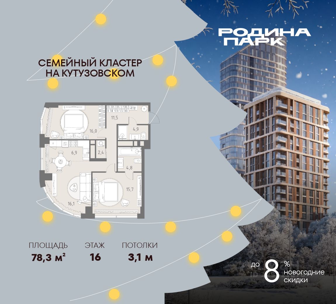 В жилом кластере Родина Парк рядом с природным заказником Долина реки Сетунь продаётся 3-комнатная квартира.