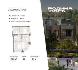 В жилом кластере Родина Парк рядом с природным заказником Долина реки Сетунь продаётся 3-комнатная квартира.
