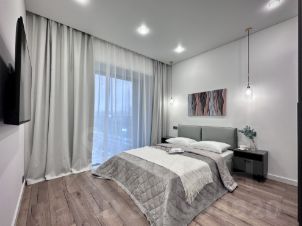 Новая, модная квартира в башне - небоскреб в ЖК Сити Бэй. В квартире только закончили ремонт. Функциональная планировка. Квартира очень просторная, много зон хранения. Отличные виды из окна. На полу постелен ламинат и плитка - керамогранит, стены краска - Англия, в ванной комнате столешница- искусственный камень. Высокие двери - 2.4 метра. На кухне ( варочная панель, холодильник, посудомоечная машинка, духовой шкаф, вытяжка)