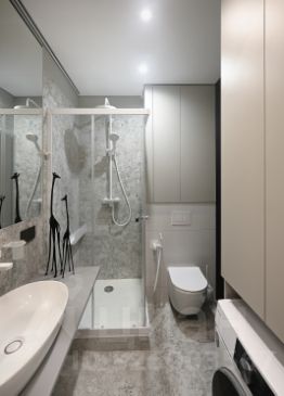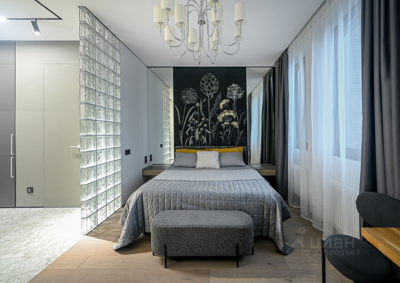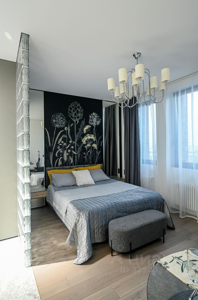 - Интерьер функционален и включает в себя: спальную зону с удобной ортопедической кроватью 160*200, гардеробную, вместительную кухню и ванную комнату.