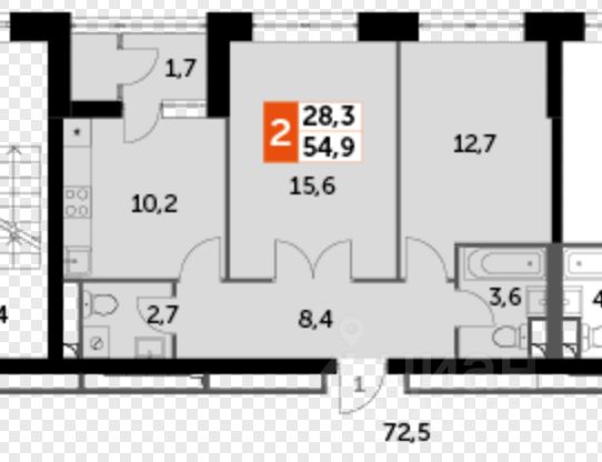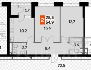 Продается 2- комнатная квартира 54.9 метров с удачной планировкой.