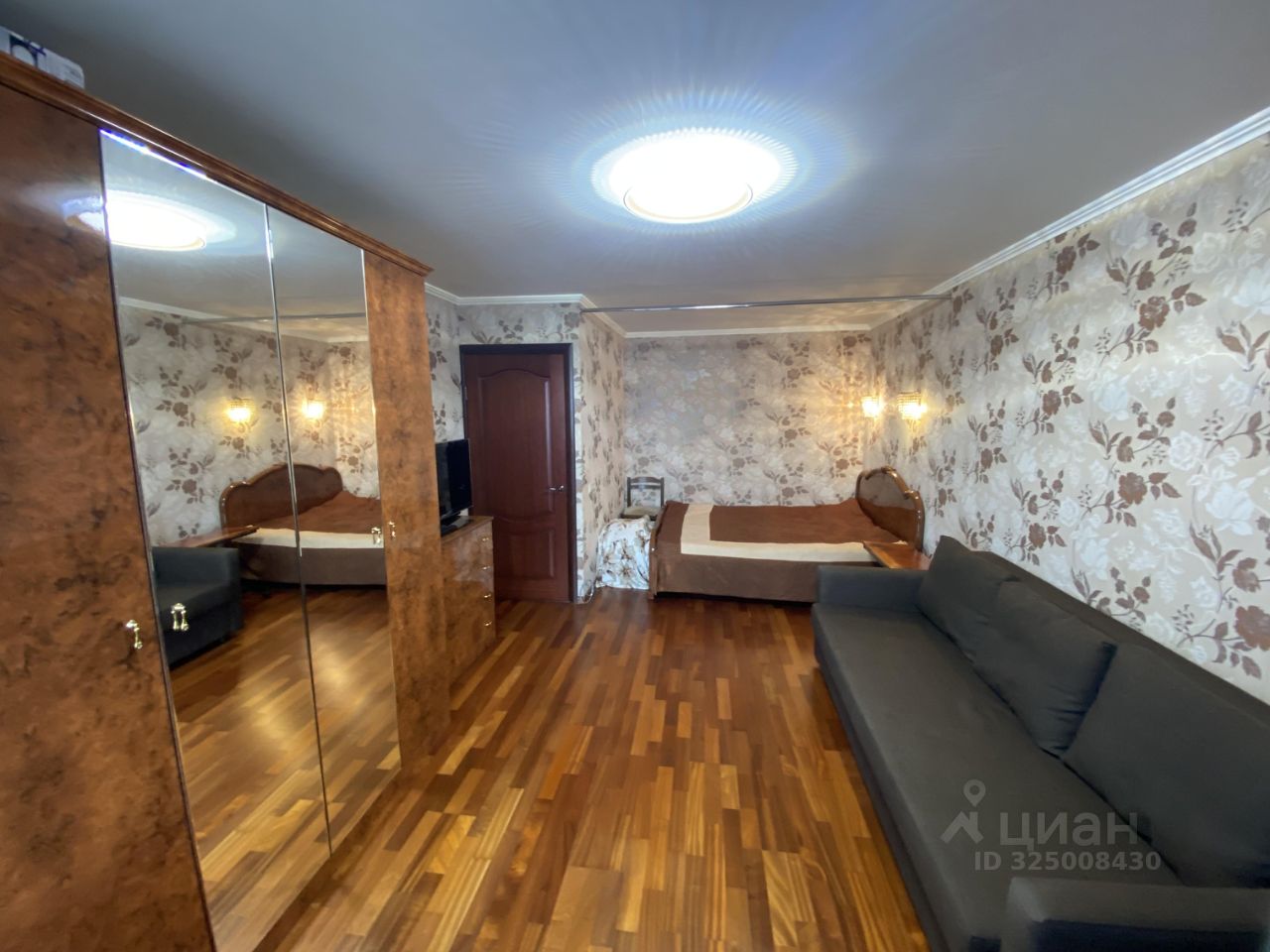 Квартира полностью готова к комфортному проживанию с мебельным гарнитуром в комнате, на кухне и в прихожей мебель в едином стиле с встроенным бытовым оборудованием. В комнате 19,2 кв мебельный набор: двухспальная кровать, большой трехстворчатый платяной шкаф с антресолями, комод + диван (второе спальное место), кондиционер, интернет + закрытая отапливаемая лоджия как дополнительное помещение - спорт. тренажерная. В комнате высота потолков 2.7 м, на полу паркет.