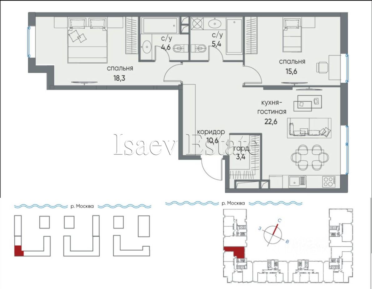 • Общей площадью 80.4 кв м на первой линии у реки. Высота потолков -3.25 кв м. Просторная кухня гостиная, две спальни, два санузла, гардеробная. без отделки. У Вас есть возможность воплотить собственные дизайнерские решения и выполнить ремонт по своему вкусу