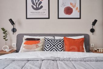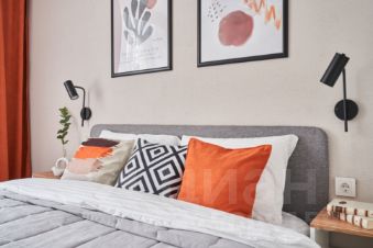 * В спальне: двухспальная кровать, шкаф-купе, дополнительная ниша для хранения вещей, прикроватные тумбы