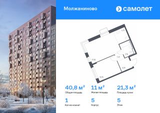 Строим кварталы для жизни с заботой о будущем. Предлагается 1-комнатная квартира комфорт-класса 40,78 кв.м в корпусе 5 на 5 этаже, в ЖК "Молжаниново"