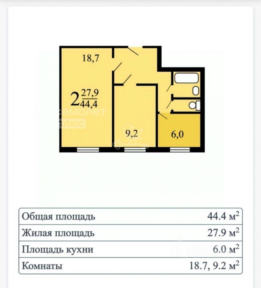 *Квартира без балкона/лоджии) на 8 этаже 9-ти этажного дома типовой серии II-49 (модификация II-49/М вариант Д).