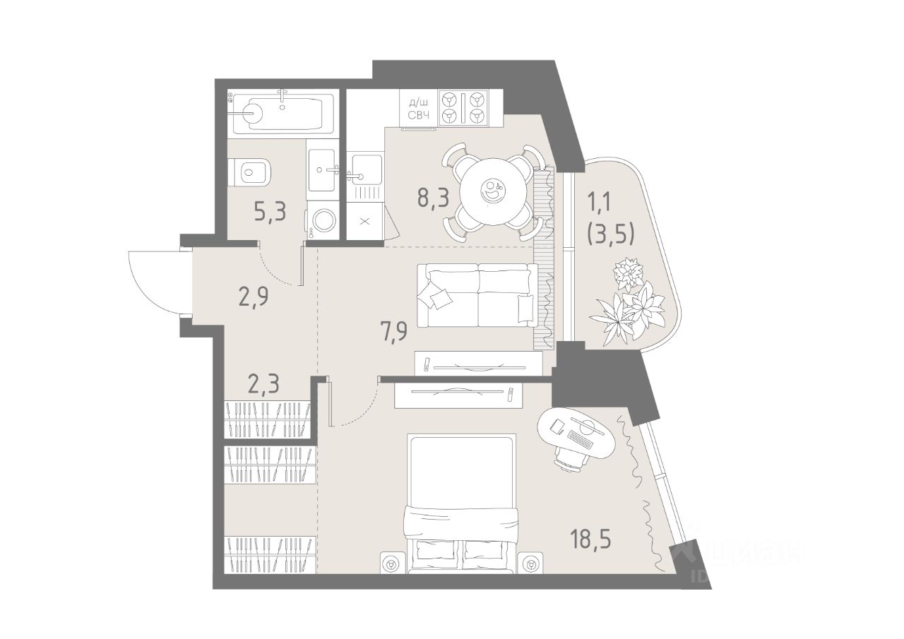 В жилом кластере Родина Парк рядом с природным заказником Долина реки Сетунь продаётся 2-комнатная квартира. Продуманная европланировка, которую легко зонировать под ваши запросы. Потолки от 3,1 м. "Родина Парк" — премиальный семейный кластер с образовательным медиакластером, строящийся на западе Москвы в окружении природного заповедника "Долина реки Сетуни". • Скидки недели на избранный пул лотов • Рассрочка 0% на выгодных условиях до 2 лет • Семейная ипотека, подбор комбо-вариантов ипотечных программ прямо в офисе продаж • Скидки 8% при 100% оплате или ипотеке. ЛОКАЦИЯ: 8 минут пешком до станции БКЛ "Давыдково". 12 минут на автомобиле до Нового Арбата. Удобные выезды на Кутузовский проспект, Аминьевское шоссе. ИНФРАСТРУКТУРА И СЕРВИСЫ ДЛЯ ЖИТЕЛЕЙ - Уникальная экосистема для развития, здоровья и творчества на территории 3,5 Га: - Первый в России образовательный медиакластер (с участием Русской медиагруппы) для творческого развития детей и взрослых с возможностью получить востребованную профессию в сфере шоу-бизнеса. - Инфраструктура и сервисы для семей с детьми на территории жилого кластера (частный детский сад, детские игровые пространства, творческие студии для занятий музыкой и танцами, безопасная и комфортная среда для детей и родителей), событийно-культурная площадка для проведения семейного досуга); - Здоровая среда (биохакинг-центр, фитнес-зал и спортивная инфраструктура во дворе, медитационные пространства, инженерные решения для освещения, свежего воздуха и очистки воды, сервисы красоты и поддержания активного долголетия); - Сервисы заботы (инфраструктура комфорта - подземный паркинг, кладовые, колясочные, консьерж- сервис, умный дом, мобильное приложение, профессиональная управляющая компания, сервисы охраны и обеспечение абсолютной безопасности) - Комьюнити резидентов (социальные пространства для дружеского и делового общения - летний атриум с уличным кинотеатром, зоны отдыха, кафе и рестораны, комьюнити-сервис с культурно- событийной программой в медиакластере); - Модуль благосостояния (комфортные пространства для работы и саморазвития - коворкинги и переговорные). ИНФРАСТРУКТУРА РАЙОНА: Насыщенная образовательная среда: филиалы МГИМО, МГУ, МГТУ, Сколково. Топовые школы: 6 лучших частных школ Москвы и области (Forbes) в 10 минутах езды. Природное окружение для пеших прогулок, спорта и отдыха. "Родина Парк" — это место, где растут и дети, и ваши возможности. Экосистема, где всё подчинено развитию — физически, профессионально, творчески.