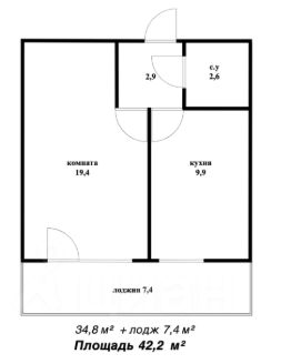 — Площадь 42,2 м² (по выписке 34,8 м² + 7,4 м² лоджия)