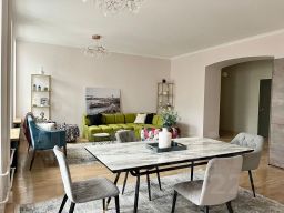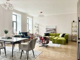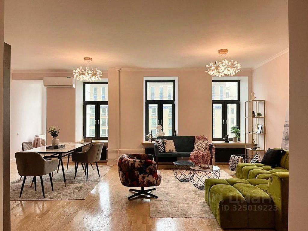четырехкомнатная квартира общая площадь 145кв.м., жилая площадь 95кв.м. Комнаты изолированные - 3, большая кухня-гостиная, вторая кухня с окном и вторым выходом (при желании можно сделать ещё одну комнату), 3 санузла, везде установлены кондиционеры, квартира расположена на пятом этаже. Высокие потолки. В настоящее время квартира в аренде, идеальное предложение для арендного бизнеса, объект раскручен, есть управляющая компания.