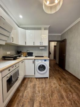 КВАРТИРА: 1-комнатная, 38,4 м² (кухня 10 м²), 14-й этаж. Ремонт в стиле лофт — уникальный стиль и характер. Две лоджии (одна большая в комнате с тёплым электрическим полом, вторая на кухне). Гардеробная и встроенный шкаф в комнате. Вся техника: посудомойка, кондиционер, вытяжка, духовой шкаф, чайник, стиральная машина, гладильная доска, телевизор. Кровать с подъёмным механизмом. Высокие потолки 2,64 м. "Хорошая аура" квартиры!