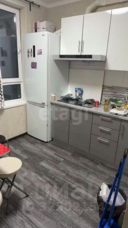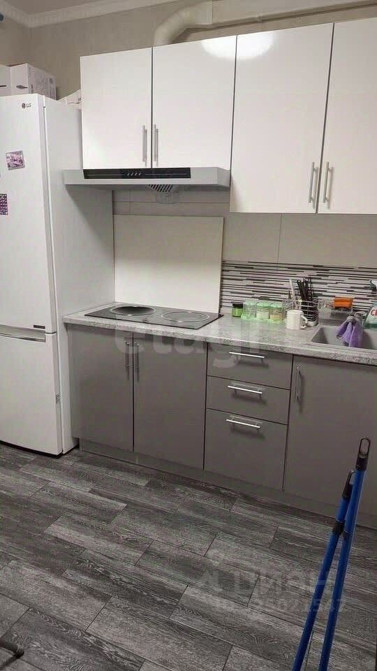 Объект с дизайнерским ремонтом и полностью готов к проживанию: в помещении установлена вся необходимая бытовая техника, включая холодильник, стиральную машину и электронную плиту, а также оставлена практичная мебель — кровать, шкафы, кухонный гарнитур и стол со стульями.