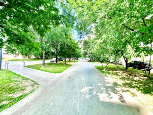 Дом расположен в развитом, экологичном и зеленом районе. В шаговой доступности — все необходимое для комфортной жизни: супермаркеты, кинотеатр, детские сады и школы, детская и взрослая поликлиники. Во дворе — две детские площадки. Рядом — парки и пруды для отдыха и прогулок. Уникальная транспортная доступность: метро — буквально за углом.