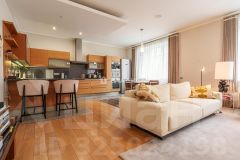 В квартире четыре изолированные комнаты, кухня площадью 51,3 кв. м, 4 совмещённых санузла. Окна выходят на улицу и во двор, что обеспечивает достаточное количество естественного света. Есть удобная лоджия, где можно обустроить место для отдыха.
