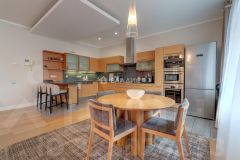 Квартира расположена на 3 этаже 16-этажного монолитного дома, построенного в 2000 году. Общая площадь — 204,2 кв. м,. Высота потолков — 3 метра, что создаёт ощущение простора и свободы. Дизайнерский ремонт выполнен с учётом всех современных тенденций, поэтому можно сразу заселяться и наслаждаться комфортом.