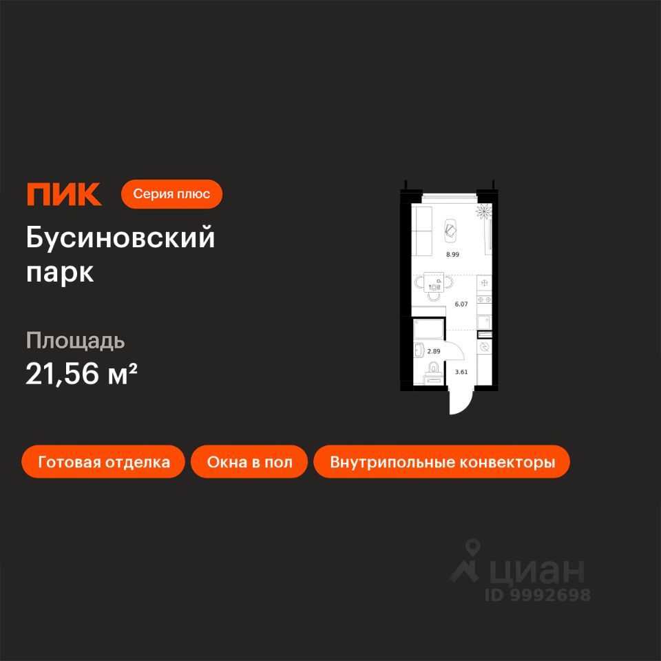 Продаётся квартира-студия площадью 21,56 кв.м на 19 этаже 32 этажного дома (Корпус 1.4, Секция 2) проекта ПИК Бусиновский парк. Светлый просторный подъезд на уровне земли, функциональная планировка, большие окна, c отделкой.