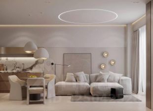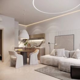 Проект выполнен в светлых тонах, благодаря чему квартира выглядит ещё более просторной, светлой и гармоничной — идеально подходит для тех, кто ценит чистую эстетику, спокойствие и визуальную легкость интерьера.