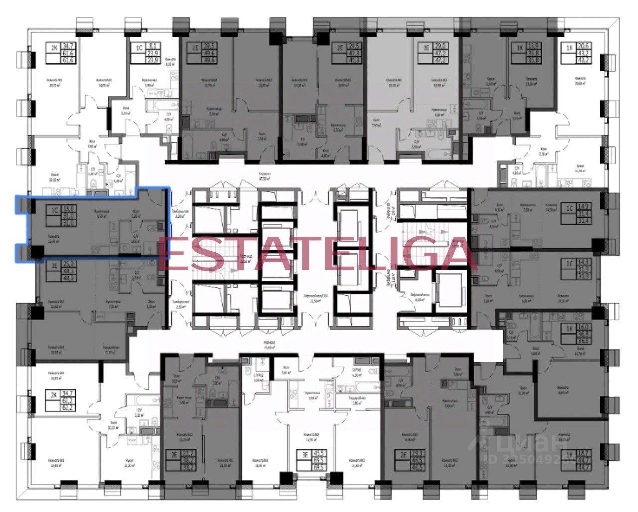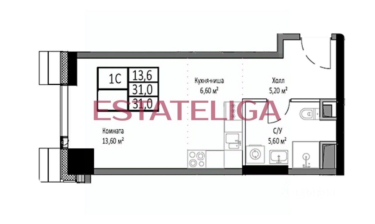 Id 59132. Продается студия площадью 31 кв.м. с отделкой white-box на 17-м этаже 35 этажного дома в ЖК "Мираполис"