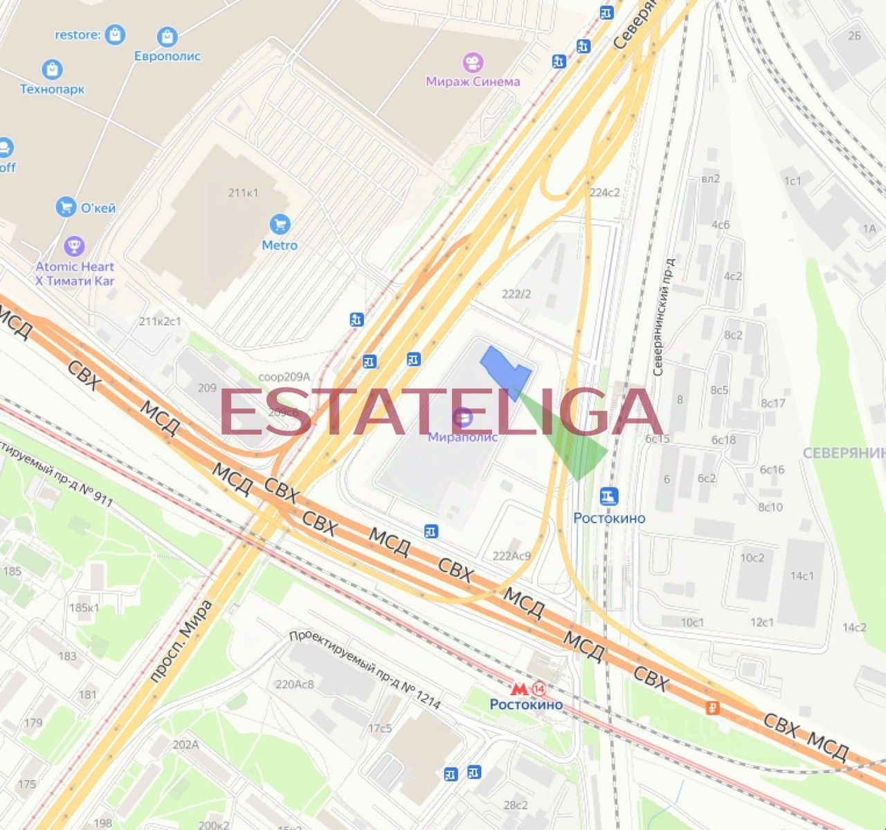 МИРАПОЛИС расположен в 3 минутах пешком от МЦК "Ростокино". За 5 минут - можно добраться до ст.м. ВДНХ на машине, а быстрый выезд на главные транспортные магистрали (ТТК и Проспект мира) позволит доехать на личном авто до центра Москвы за полчаса.
