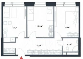 Апартамент состоит из двух комнат, кухни-гостиной, коридора, санузла и гардеробной. Все комнаты изолированные.