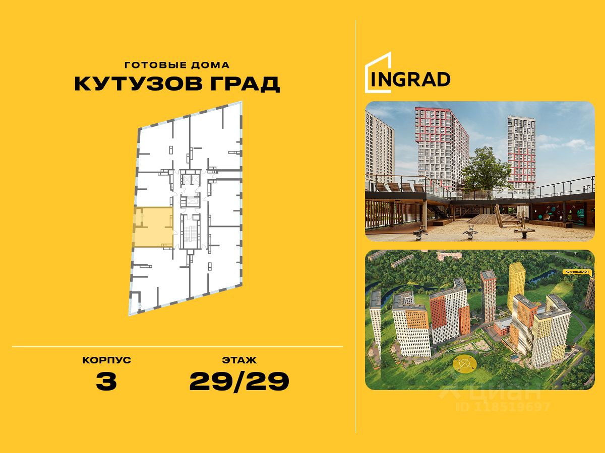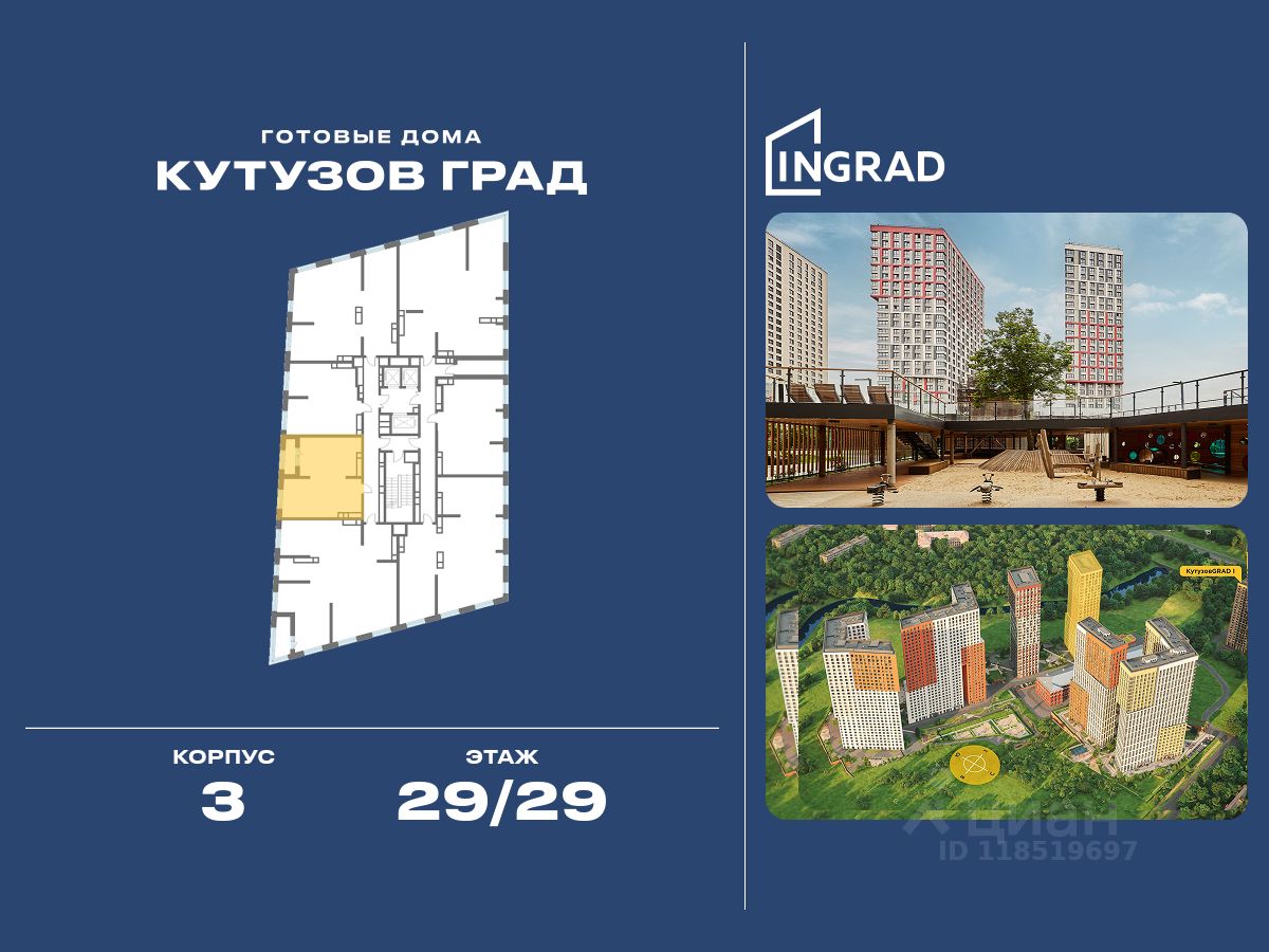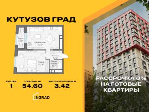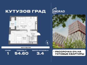 К покупке предлагается 1-спальная квартира площадью 54.60 кв.м, расположенная на 29 этаже 29-этажного корпуса 3, в жилом квартале бизнес-класса "Кутузов Град".