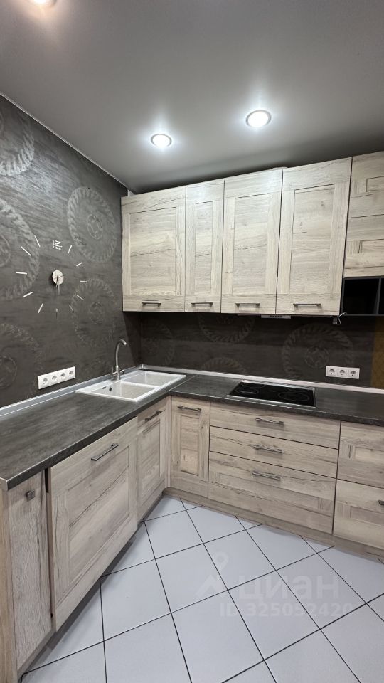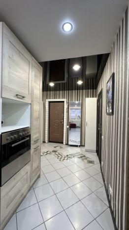 В квартире остается встроенный кухонный гарнитур с варочной панелью, духовым шкафом и вытяжкой.