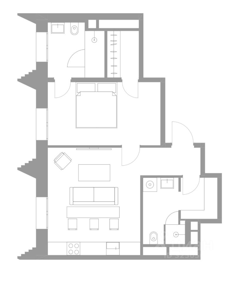 Не установлены гардеробные системы, что дает возможность сделать гардероб под себя.