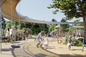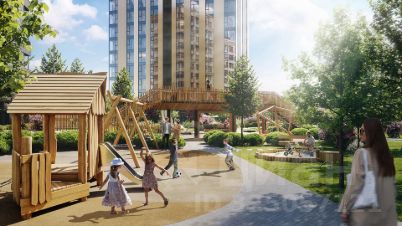 благоустроенный зеленый двор без машин с игровыми площадками и спортивными зонами, эффектная входная зона с панорамным остеклением, подземный паркинг.