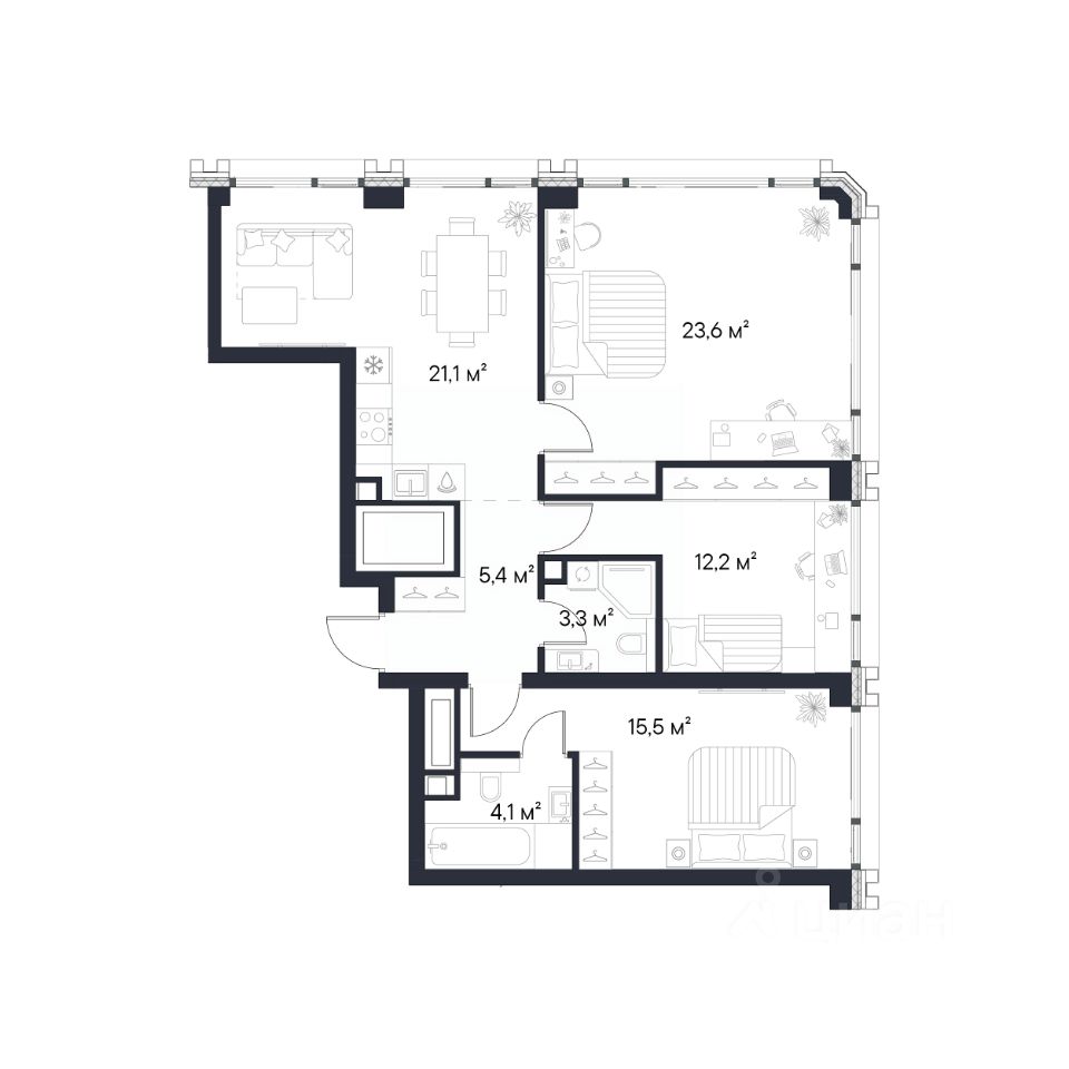 Продаётся 3-комнатная квартира площадью 85,2 м², расположенная на 39 этаже корпуса 2,1.