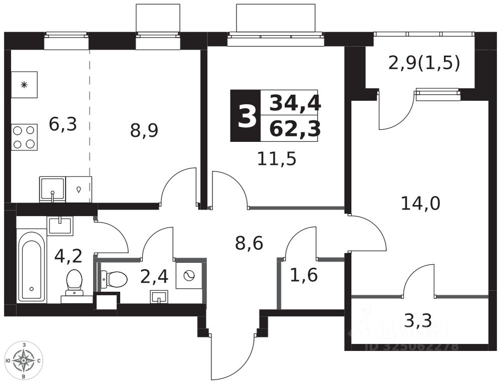 Продаётся 3-к квартира номер 760 общей площадью 62.3 кв.м. на 16-м этаже 18 этажного здания. Отделка Whitebox. Цена с учётом скидки.