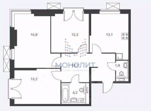 Просторная 3-комнатная квартира в новом монолитном доме с парком рядом