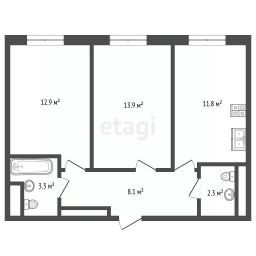 Основное преимущество данного объекта - это свободная планировка с двумя зонами под сан узлы, которая позволяет воплотить в жизнь самые смелые дизайнерские решения.