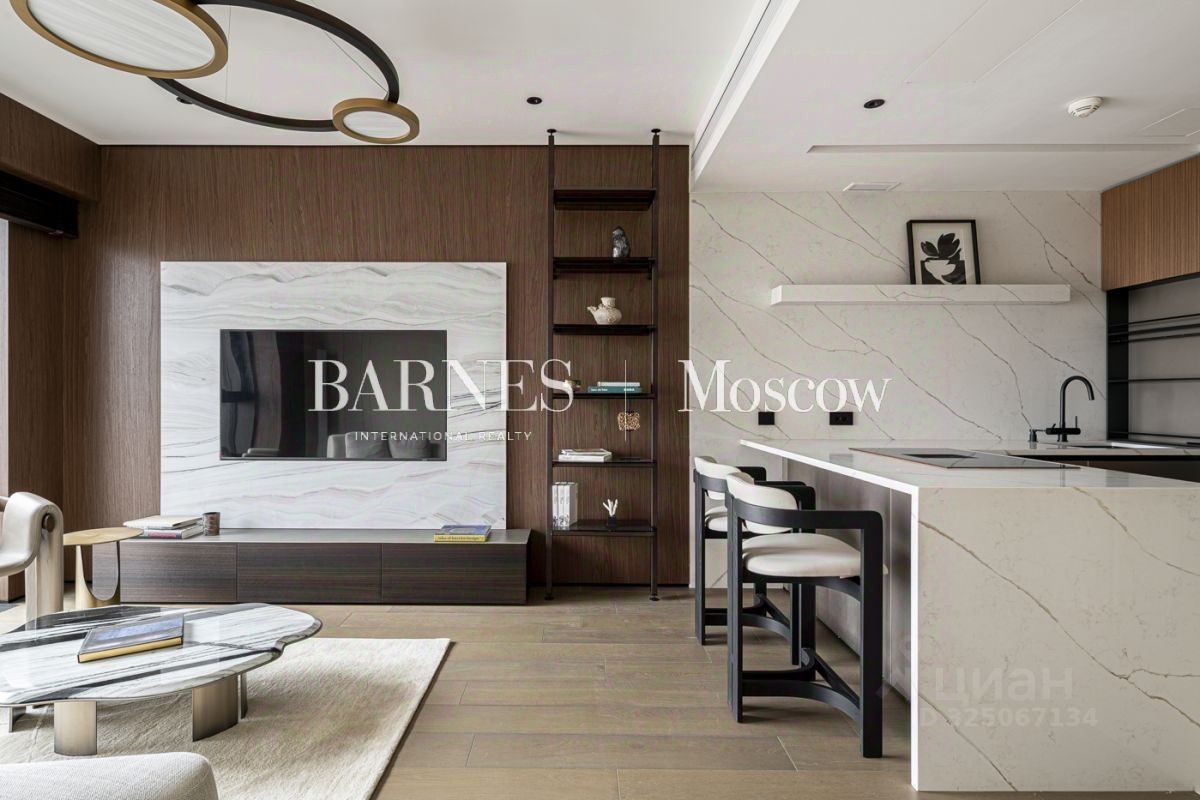 Апартамент с дизайнерской отделкой с использованием премиальных материалов (натуральный шпон, кварц) и брендов: стиральная и сушильная машины Miele, посудомоечная машина и духовой шкаф Bosсh, холодильник Liebherr.