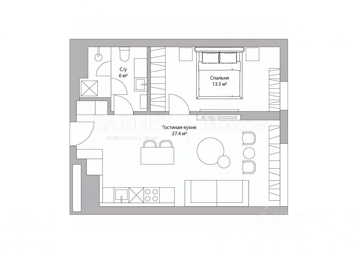Апартамент укомплектован дорогой мебелью и оснащен всем необходимым для комфортного проживания.