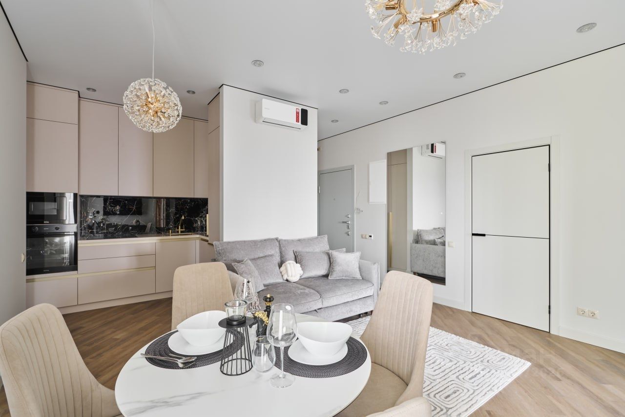 В квартире стены под покраску, сантехника Rehau. Полы кварц винил Tarkett, в прихожей и санузле тёплый пол, керамогранит. Межкомнатные двери эмаль, входная металлическая дверь Le-gran. Окна пластиковые стеклопакеты Rehau с повышенной шумоизоляцией. Планировка: кухня-гостиная (20 кв.м), спальня (17 кв.м) + спальня (11кв.м), просторный санузел (6.9 кв.м), прихожая с гардеробной нишей. Санузел совмещенный, полностью отделан плиткой Kerama Marazzi, установлена качественная сантехника, встроенный шкаф под стиральную машину. Гардеробная (4 кв.м) оборудована как дополнительная зона хранения. В квартире остается все как на фото ! Встроенный кухонный гарнитур со столешницей из искусственного камня, вся техника Weissgauff - варочная панель, духовой шкаф, посудомоечная машина, холодильник, стиральная машина с функцией сушки.