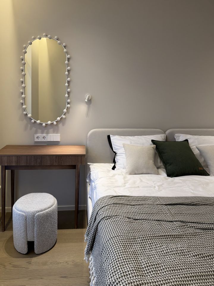 Продуманная планировка, много мест хранения, просторный санузел, 2 гардеробные, кухня-гостиная и спальня . Выполнен качественный ремонт: стены под покраску, кварц паркет, качественные инженерные системы. Апартаменты полностью укомплектованы новой и современной бытовой техникой: 2 кондиционера, стиральная и сушильная машины, встроенная посудомойка и холодильник, индукционная плита, духовой шкаф 60 см.