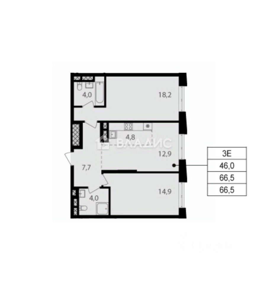 Монолитный дом. Видовой 13 этаж, свободный панорамный вид из окон в сторону соседнего комплекса. Высота потолков 2,85 м.