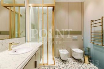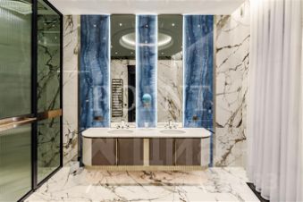 Отделка выполнена в стиле современной классики с применением натуральных материалов (краска Little Green, гипсовые панели, кермогранит, инженерная доска), установлены итальянские двери, порталы и шкафы Franco Martinello, сантехника Geberit, Duravit и GESSI, функциональная бытовая техника Miele (включая винный шкаф, паровую гладильную систему и сушильную машину). Квартира оснащена системами приточно-вытяжной вентиляции, кондиционирования, водоподготовки.
