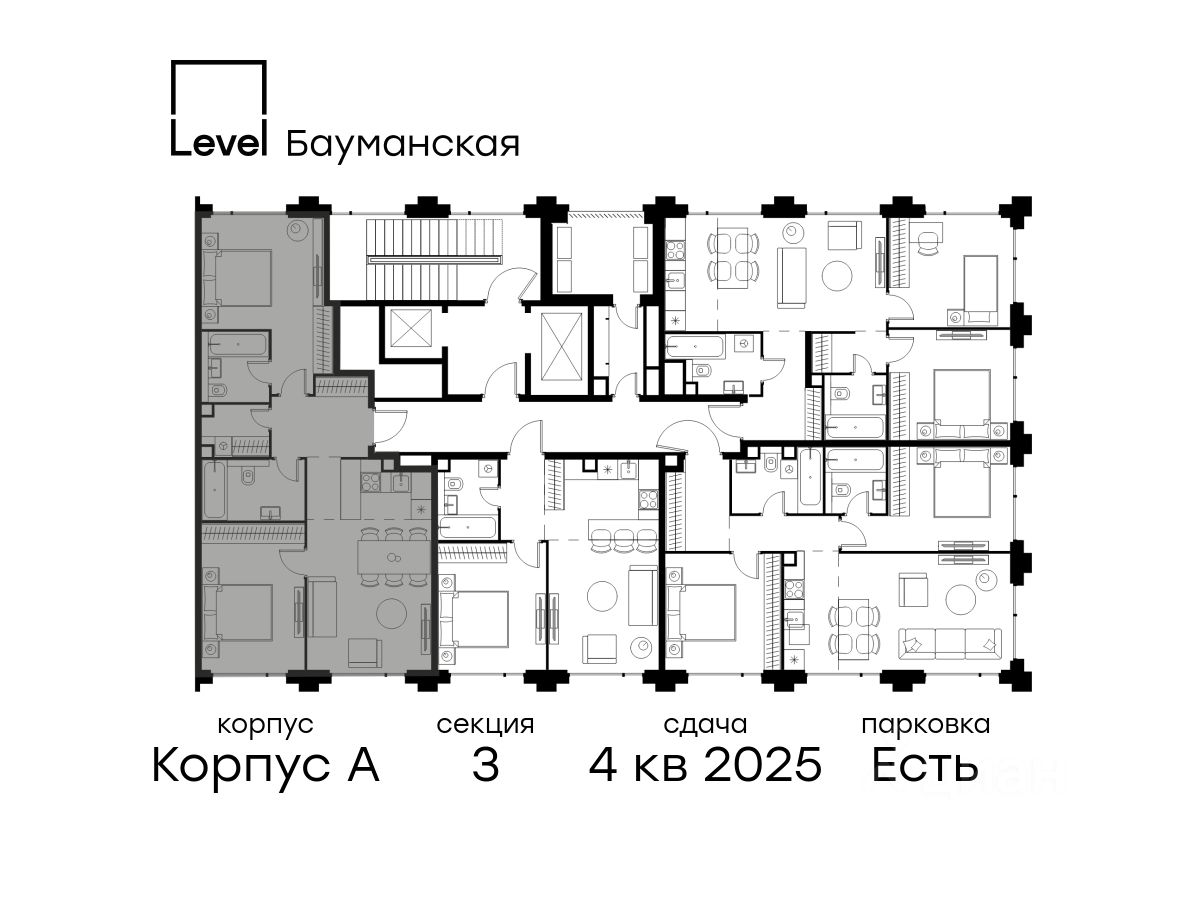 В Басманном районе (ЦАО) продается 3-комнатная квартира площадью 70.40 кв.м без отделки. Квартира расположена на 2 этаже 13-этажного корпуса " A" в жилом комплексе бизнес-класса Level Бауманская (компания Level Group).