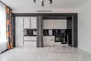 "Невидимая" кухня элегантно скрывающаяся за раздвижными дверцами