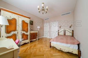 Ремонт выполнен из дорогих и натуральных материалов, на полу мрамор и премиальный паркет, мраморные подоконники. Сан техника Villeroy&Boch. Итальянские люстры. В квартире установлена система приточно вытяжной вентиляции с фильтрацией воздуха и кондиционированием.